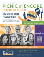 I hope you can join us in this great Networking Event! Meet the team at Encore Memory Care Team in South Barrington and please donate to the Alzheimer's Association for the Longest Day! Enjoy a picnic dinner and tour our beautiful community! RSVP by June 13th. Thank you!